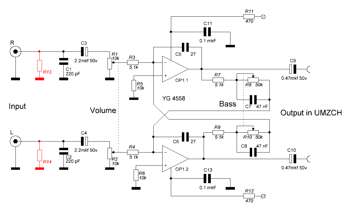 и как вариант между балансом и громкостью поставить ОУ с КУ 2...3. , откинуть второй вход.