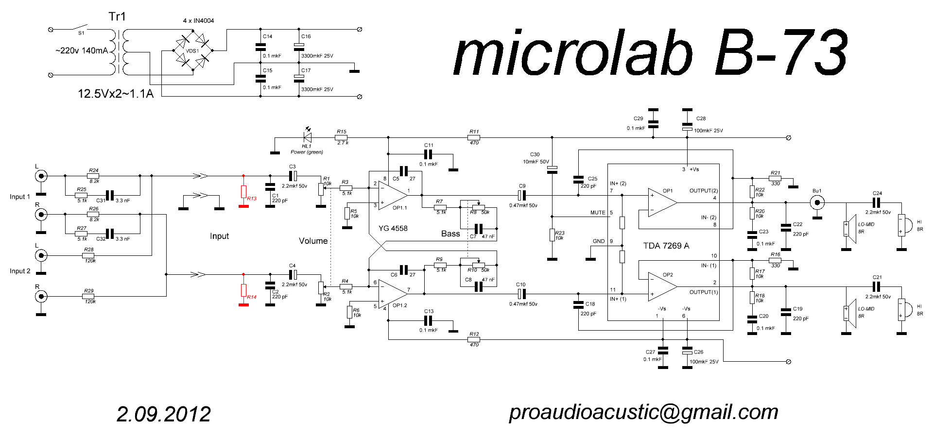 Ну вот в принципе и все, может кому и пригодиться оригинальная схема Microlab B-73,
