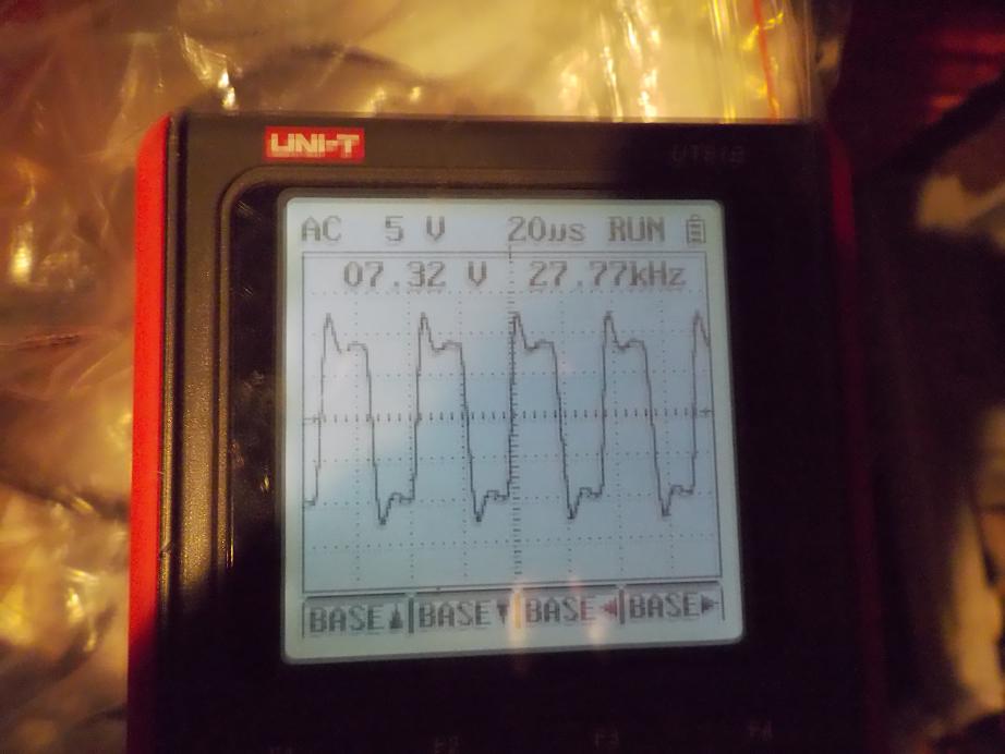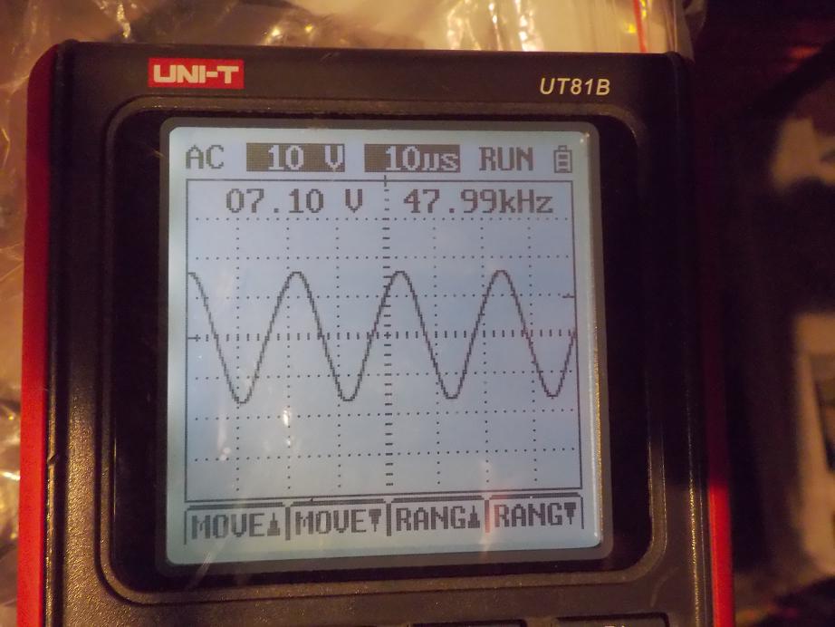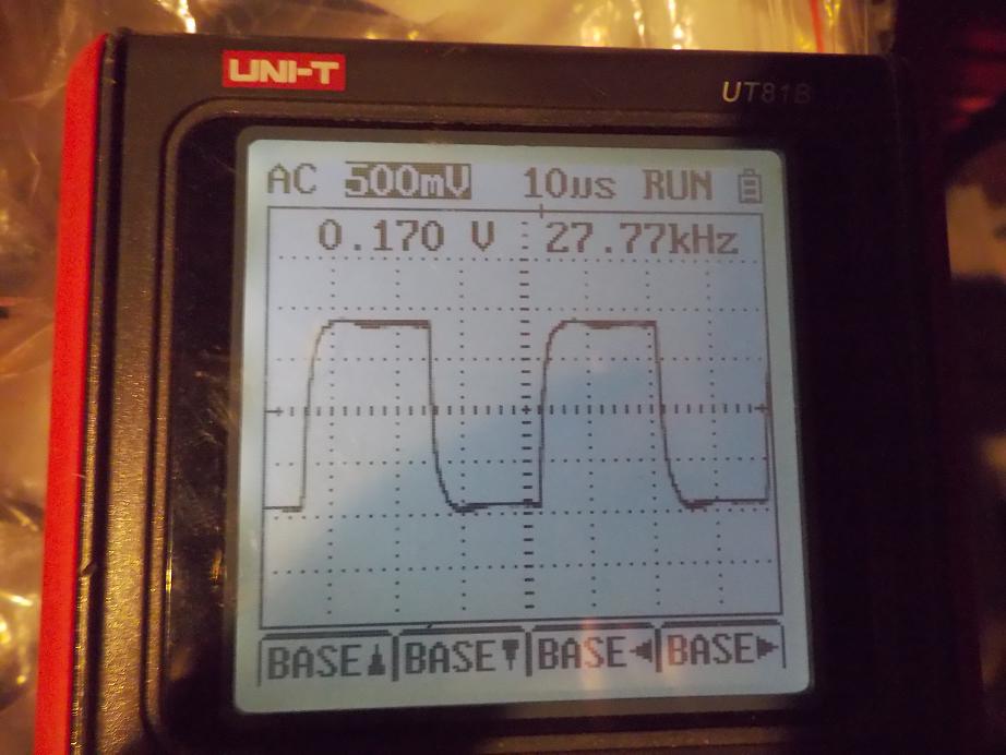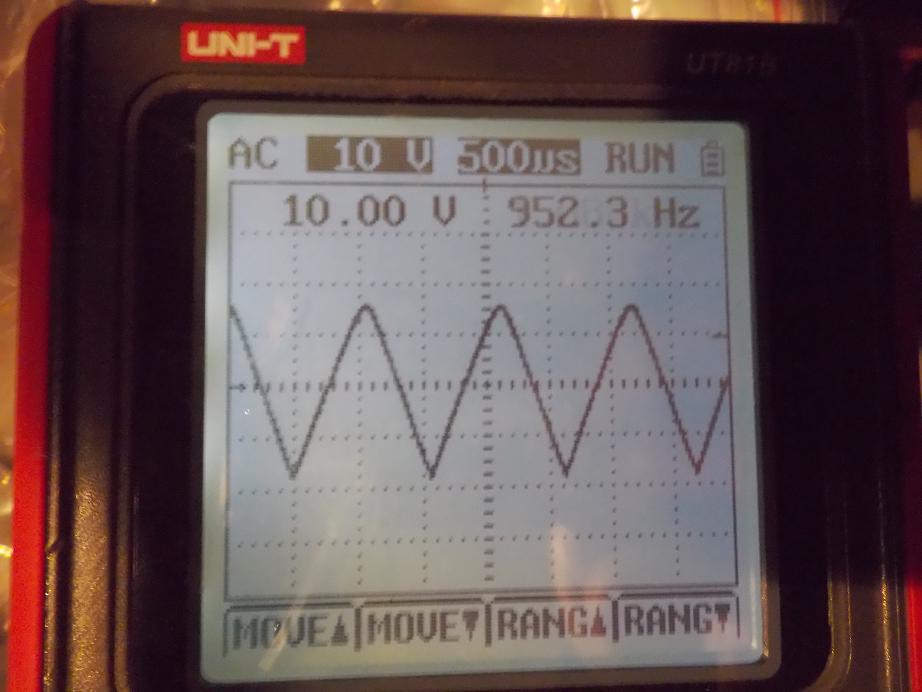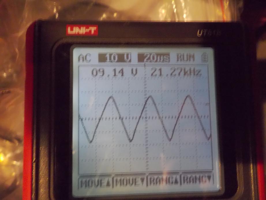 На осциллограмме новый звуковой трансформатор, параметры которого указаны выше. Как видим частотка вроде ничего, линеен до 100 кГц. Сейчас у меня трансформатор 1:20, секционирован.