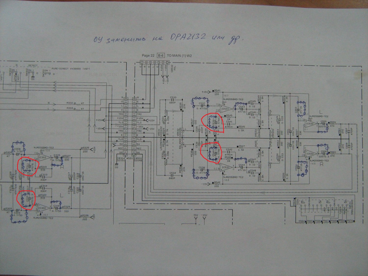 Была уже тема по модернизации 497й ямахи.Оттуда взял зарисовки модернизации, так как там всё похоже. Меня интересует на сколько оправдано закорачивание или удаление конденсаторов выделенных красным цветом.
