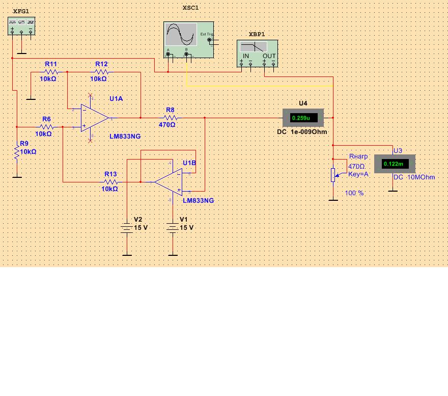 Смакетировал схему преобразователя напряжение-ток в Multisim 12.