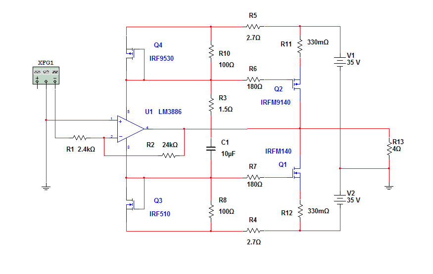 Ну в общем то все просто . С LM3886 работают IRF9630 + IRF9240 и IRF630 + IRF240 ( что было под рукой -