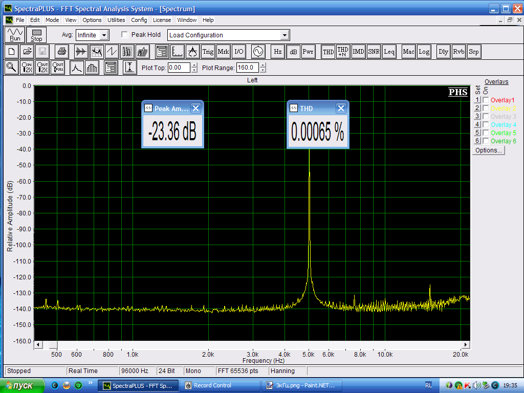 А Вы не понимаете? Вопрос стоИт не в рекордах, а в достоверности измерений, ведь чтобы достоверно измерить гармоники усилителя, у генератора эти же гармоники должны быть как минимум в 10 раз меньше по амплитуде (чтобы убрать влияние фаз), т.е. для проверки УМ с искажениями 0.002% (не самый лучший показатель и тем более не рекордный) нужен генератор с искажениями 0.0002%, а то на форумах (и на этом тоже) я вижу, как народ серьёзно верит в достоверность их измерений, получая искажения 0.001% при том, что у генератора те же искажения, да и ещё у применённой звуковой платы АЦП даёт такие же.