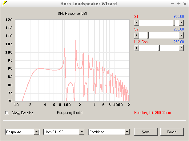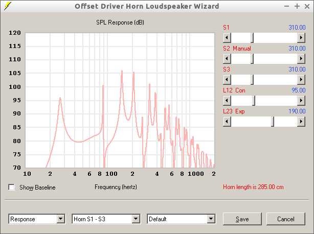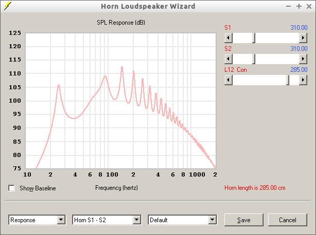 Решил виртуально испробовать данный динамик в нынче модном оформлении ЧВ. Вбил параметры в hornresp и получил следующее