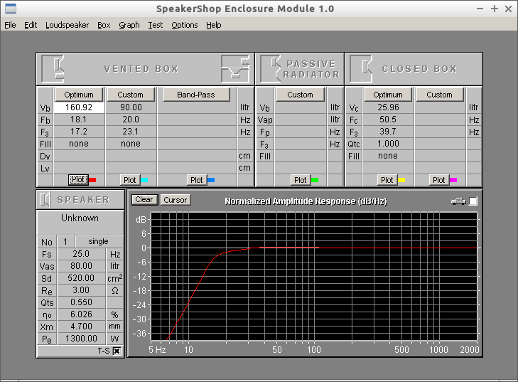 Далее, вбил параметры в JBL Speaker Shop. Тот выплюнул ящик с ФИ аж с объемом 160 литров и частотой настройки 18.1Гц. Можно ли этому верить? Настройка ФИ ниже Fs динамика - как-то странно выходит.Не будет ли звук при таком объеме расхлябанный или это действительно в самый раз?