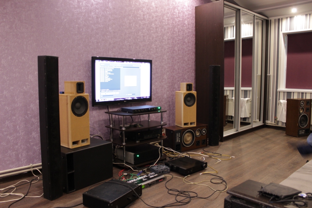 Естественно самого низа не хватало, и было принято решение послушать все вместе с делением через цифровой кроссовер. В такой конфигурации все стало на свои места, сателлиты были немного задержаны относительно сабвуфера.