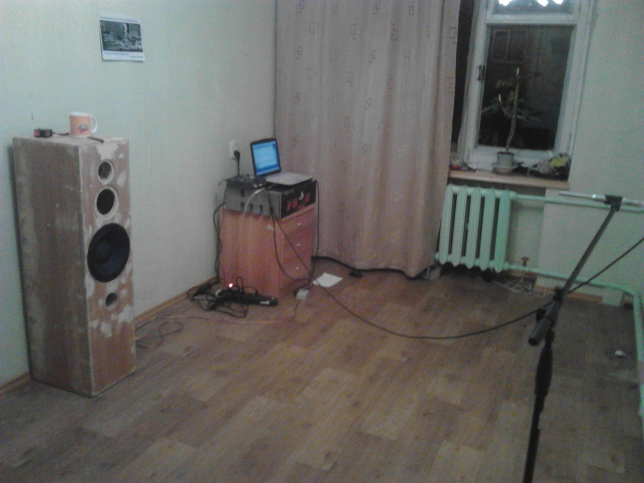Условия измерения таковы: комната прямоугольная с размерами примерно 4,6м на 2,6м высотой 2,55м. Предполагаемый слушатель расположен вдоль длинной стены, АС расположена вдоль противоположной длинной стены. Короткие стены гипсокартонной конструкцией не обшивались - только большие стены !! Пол деревянный - лаги, доски, ДВП и линолеум. Вот фото начального сетапа.