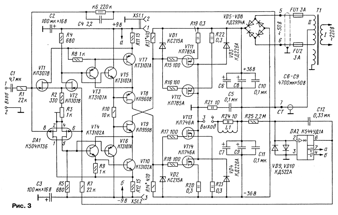 Называется УМЗЧ с комплементарными полевыми транзисторами но гугол не дал ссылку на саму схему..на сайте Радио только содержание статьи..