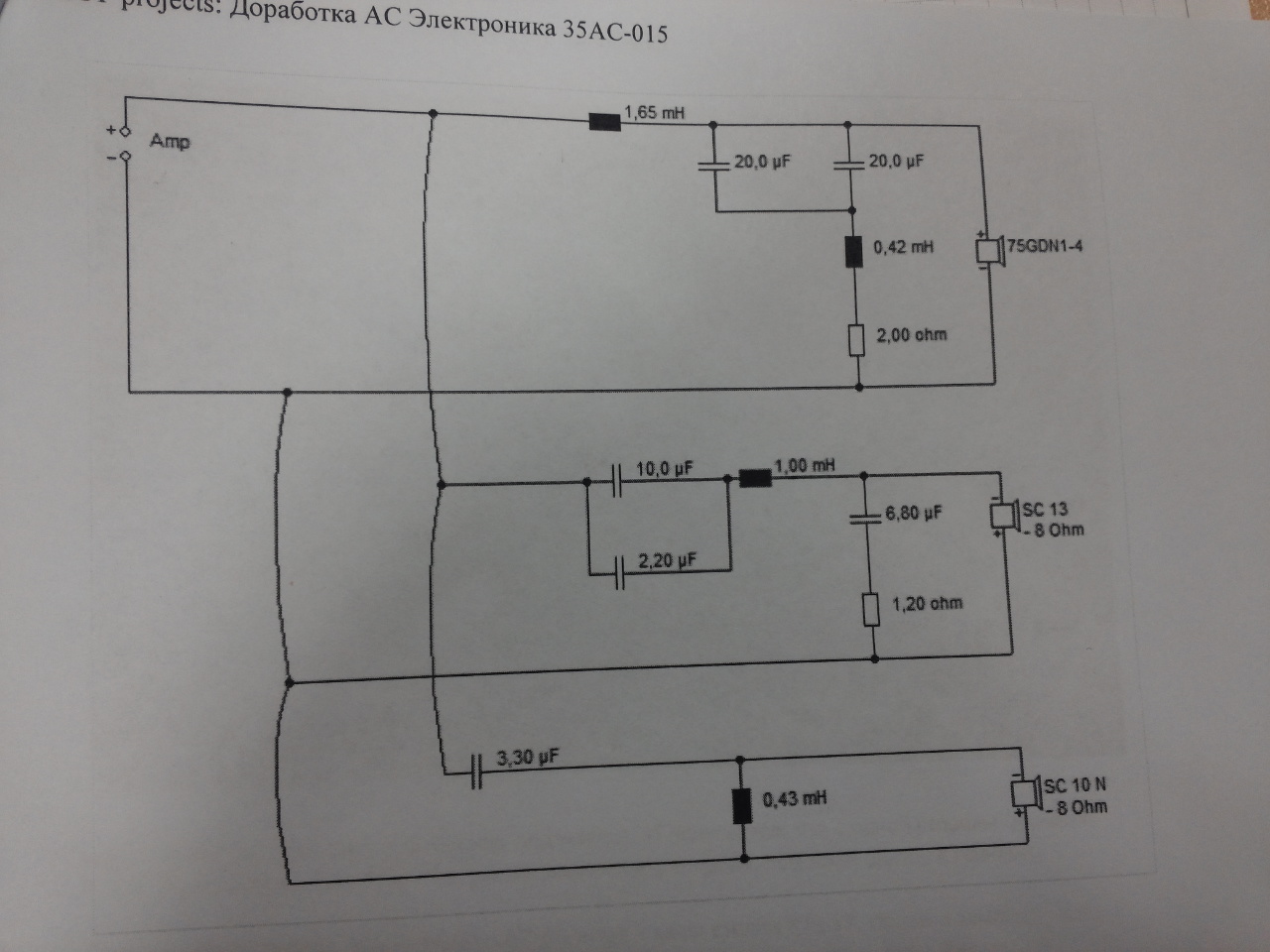 купил акустику Электроника 35 АС-015, басы устраивают, СЧ и ВЧ необходимо менять. Нашел на просторах рунета схему фильтра и замену штатным головкам на VISATON.
