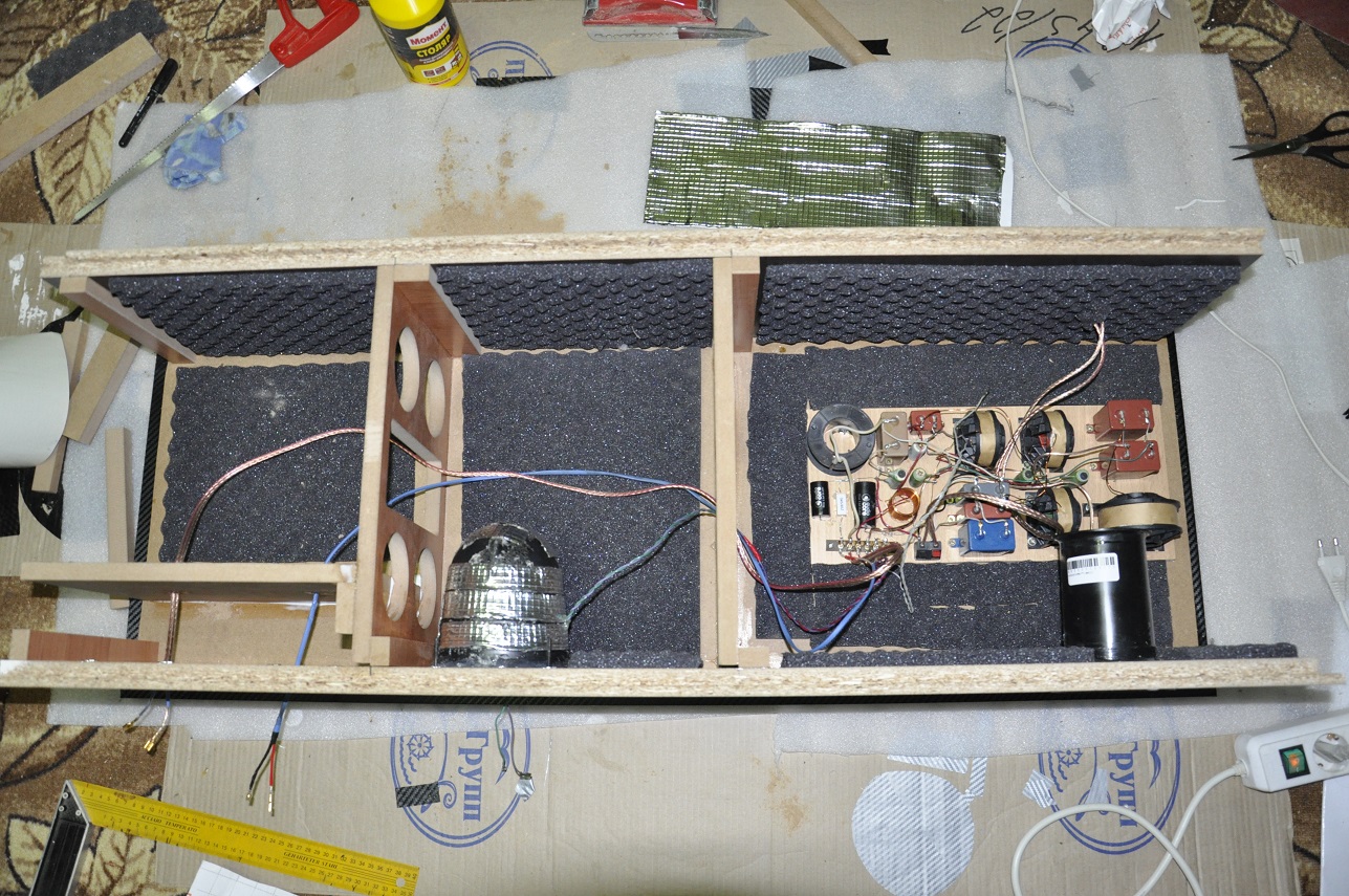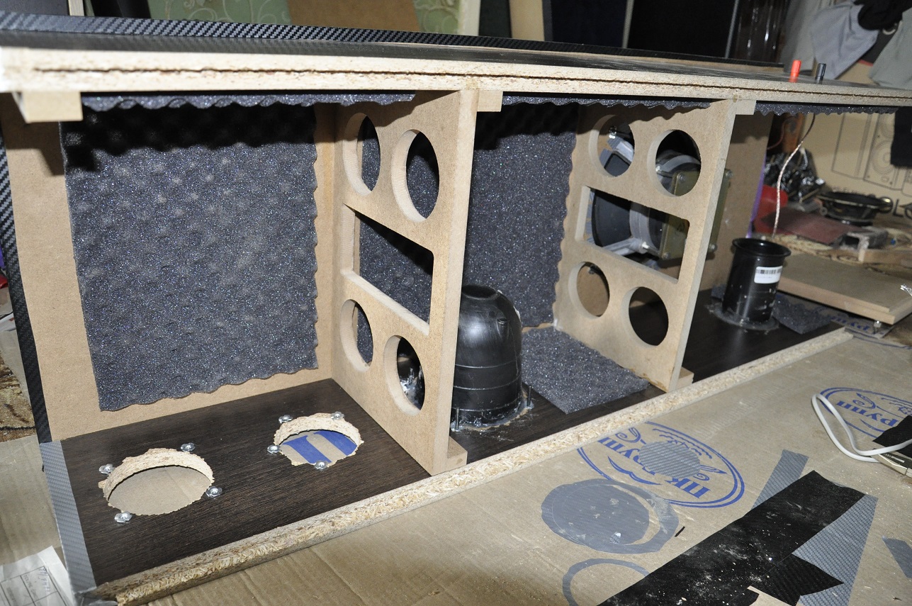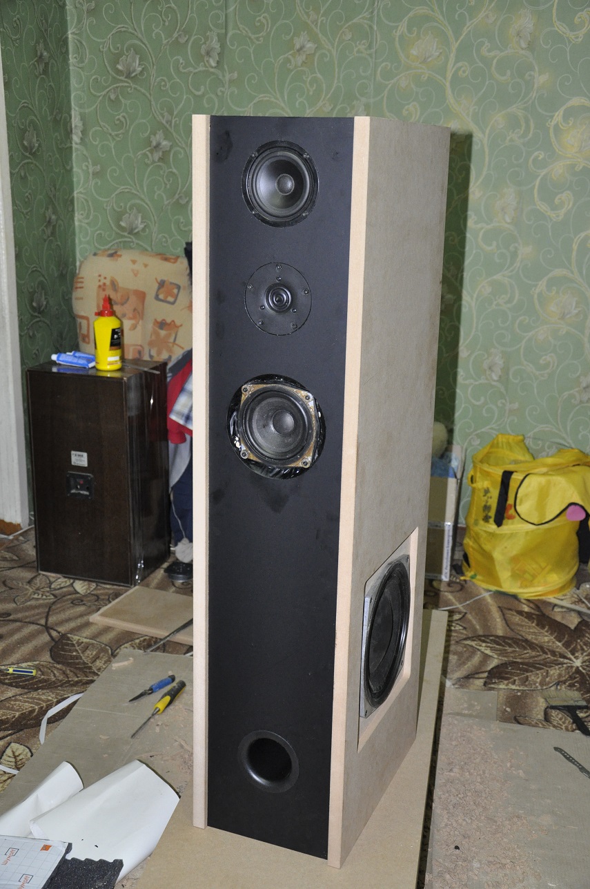 идея - заказать на распил мебельную ДСП, с нужным цветом и кромками... и собрать АС, где каждая стенка - 2 слоя ДСП, 32 мм в сумме ..