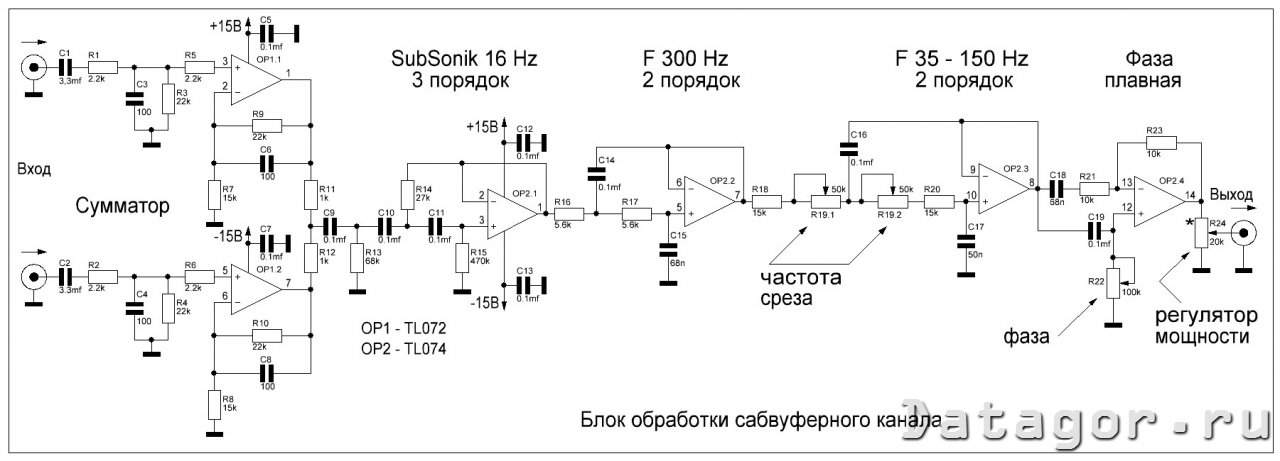 заранее извиняюсь если была подобная или похожая тема)нужен фильтр под "свои" параметры ) вообщем то не чего нового, кроме того что нужно subsonic резал уже с 30 гц а следующей после него все выше 80 гц,тут наверно просто подобрать R17 а вот что с сабоником делать ,подскажите можно частоту среза одним резюком покрутить )))