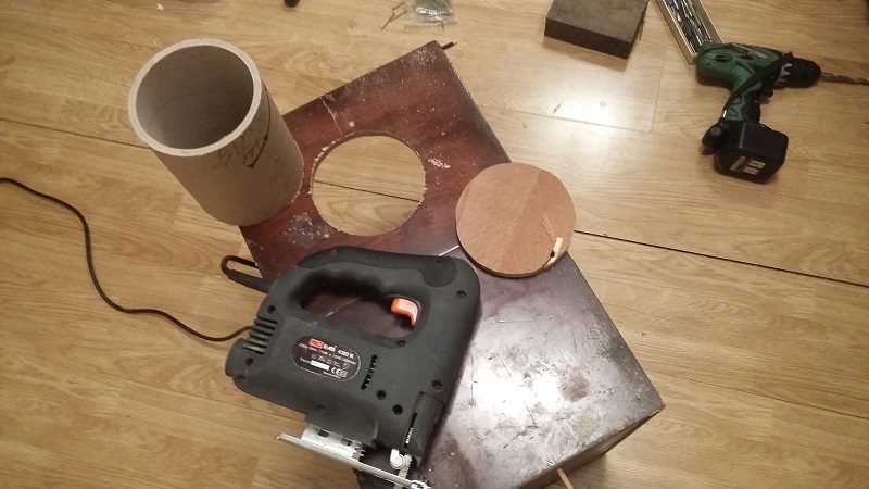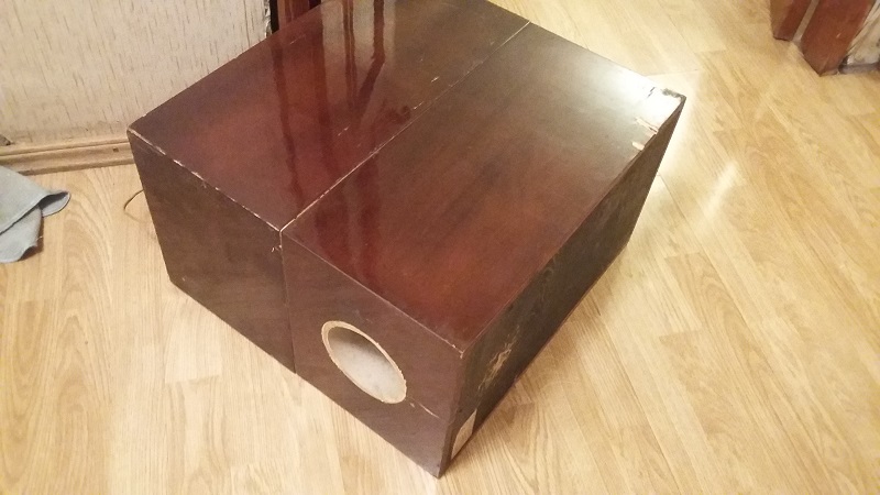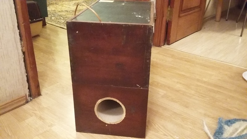 Отделка не планируется. Корпус прекрасно уместился на подставке за телевизором, стоящем в углу. Высота установки 60см. Используется с ресивером и дополнительным усилителем, все это, как и колонки, купил на интернет барахолке за сущие копейки. Понятно, что сабвуфер пассивный,и функционал ресивера с доп. усилителем используется вместо фильтров, реверса фазы и задержек. Ресивер перекочевал также за телевизор и стоит на сабе. Теперь его не видно. Для связи с пультом использован перископ(сын сочинил за 15 минут).