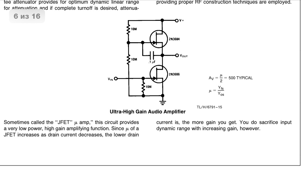 Крутизна моих экземпляров КП601 - около 75 мС, начальный ток стока - около 90 мА, только дороговаты они. Ну да ничего, заказал JFETов и Depletion MOSFETов в SOT-23, как попробую - отпишусь.