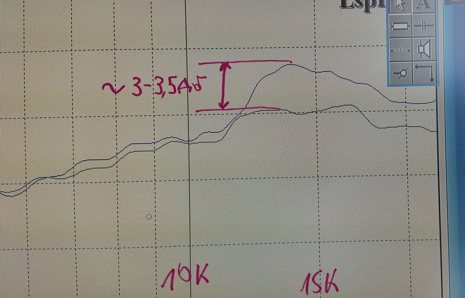 Начал разбираться и выяснилось, что одна из пищалок имеет горб после 12 кГц на +3 дБ! Такого я конечно не ожидал.