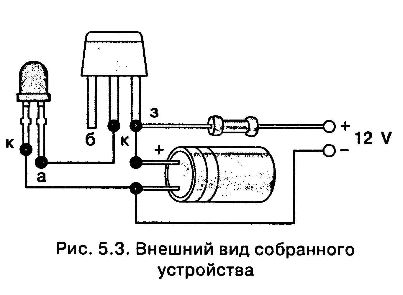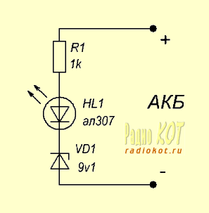 В книжке «Как освоить радиоэлектронику с нуля» самая первая схема для начала работы с паяльником вот такая: