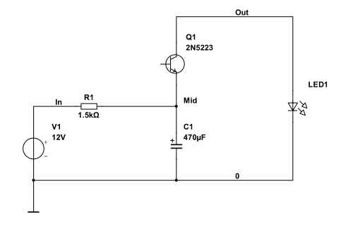 У меня появились вопросы. Плюс подается на эмиттер N-P перехода (?), а светодиод должен управляться активным компонентом, у которого нет управления (?).