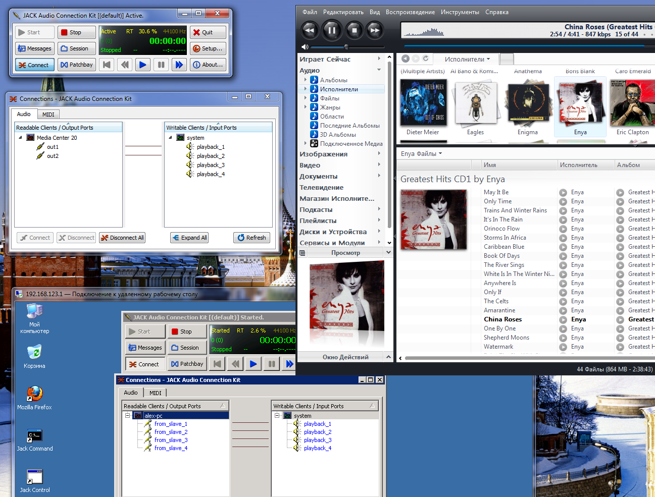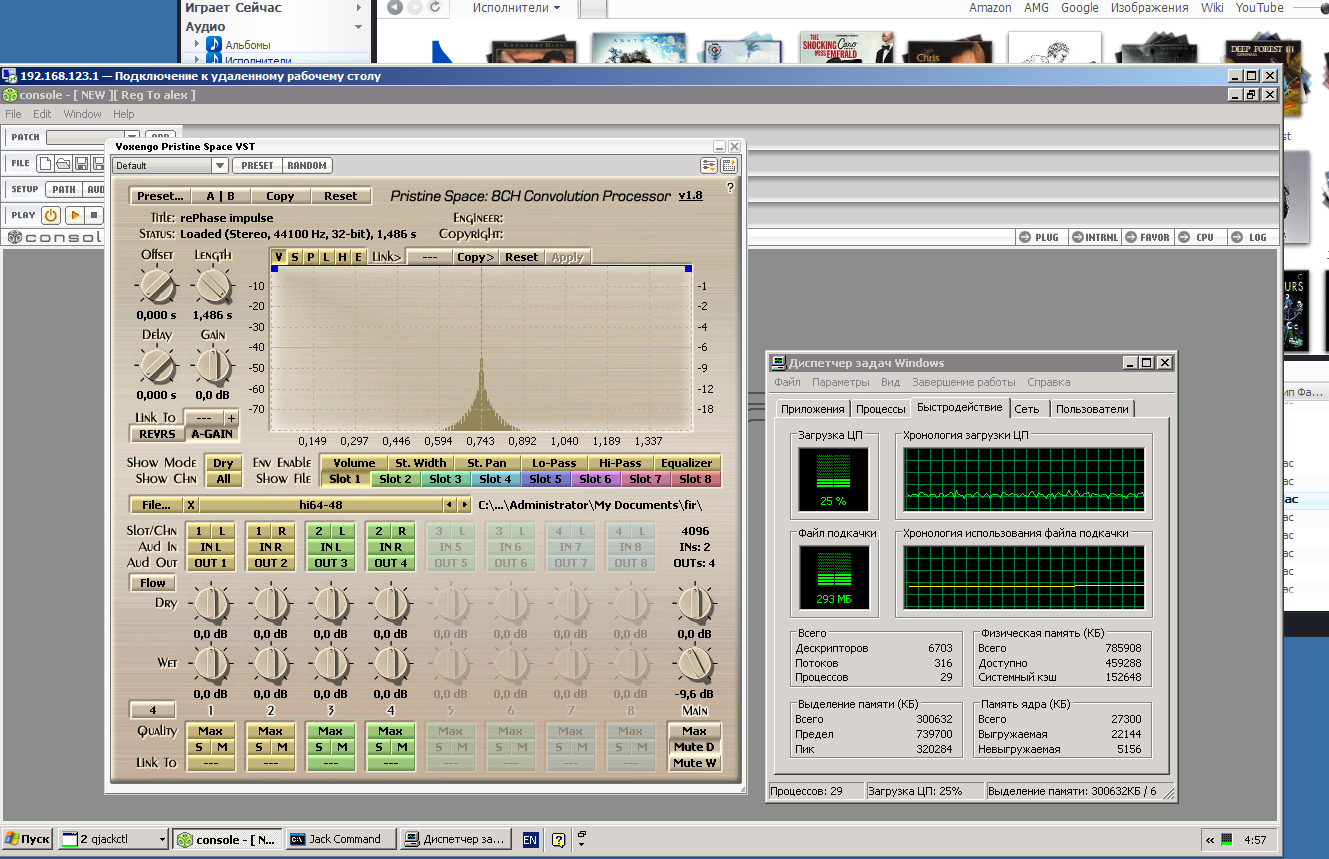 1. Операционная система настроенна только под звук, все лишнее отключено, удалено. В системе звук, сеть, FIR фильтры.