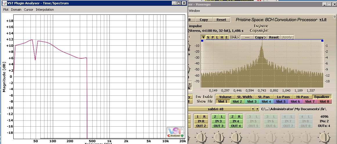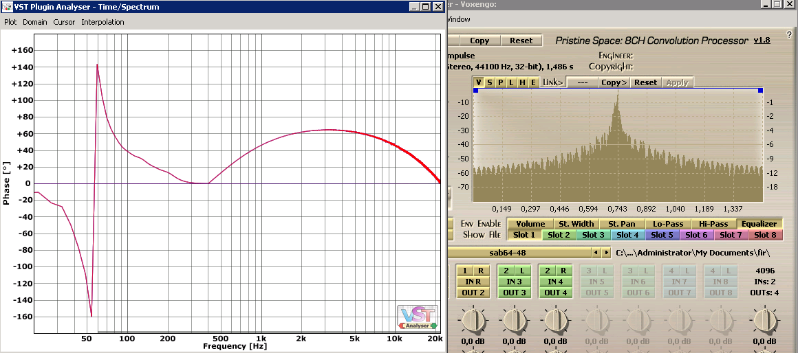 У меня только с Brutefir получается адекватная коррекция фазы в самом нижнем диапозоне 20-100Гц, минимальные нагрузки на ЦП, при любой частоте сэмплирования, и минимум софта .....