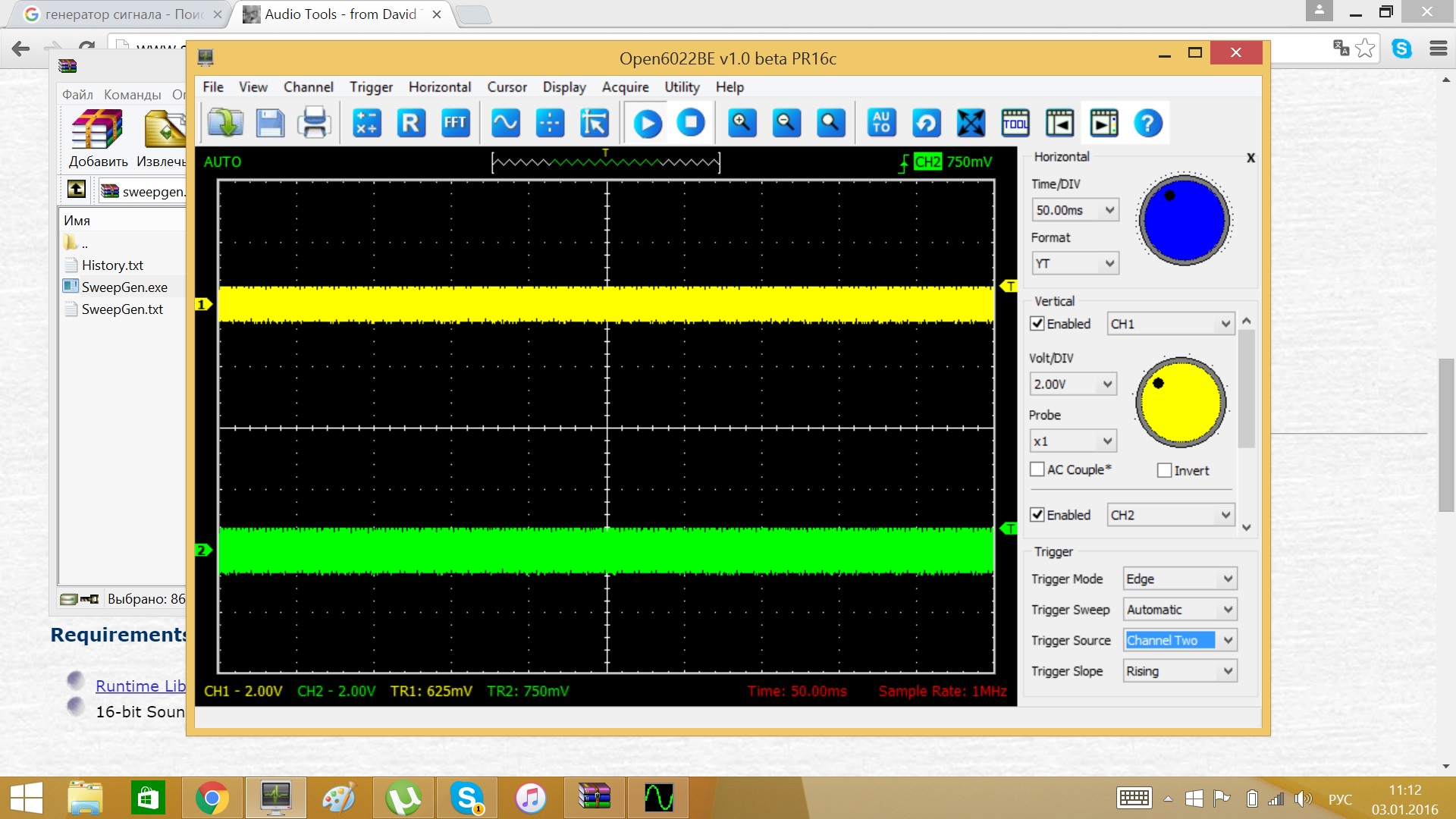 фото снято с двумя графиками размахов на одном кГц с двух цапов замкнутых в режим df mono bypass