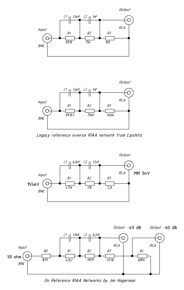 S. Lipshitz, and W. Jung, “A High Accuracy Inverse RIAA Network”, Audio Amateur, 1980
