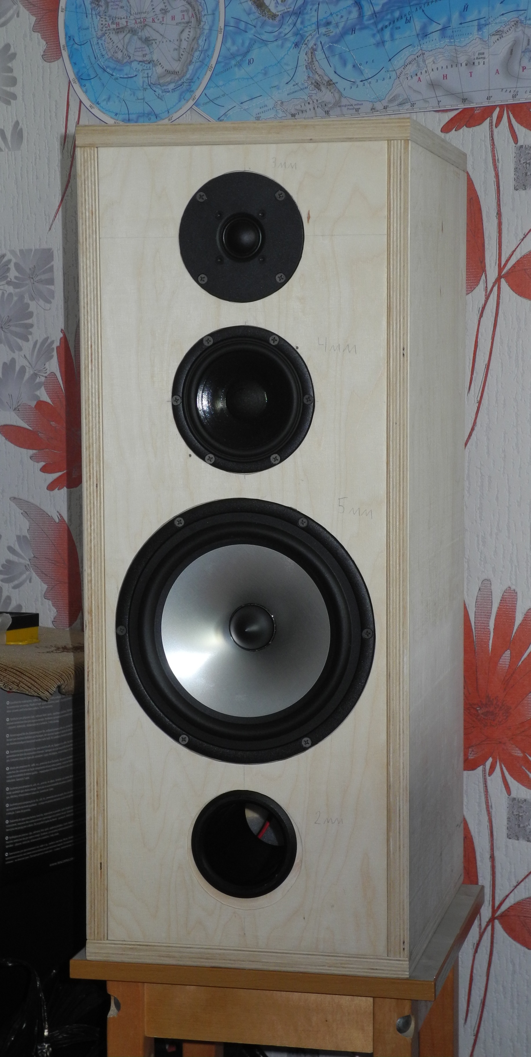 Звук акустики получился очень приятный, детальный и сбалансированный. Интересно узнать Ваше мнение, может кто-то захочет повторить, отвечу на все вопросыТак же интересна критика и советы по улучшению звучания моей АС, в частности подумываю доработать переднюю панель для совмещения центров излучения динамиков по вертикали, есть смысл это делать без измерений? пс: дада еще не доделал, осталось разместить фильтры в корпусе и внешняя отделка, ну и какой-нибудь гриль изобрести для полного счастья, пока слушаю так, не хочется разбирать))