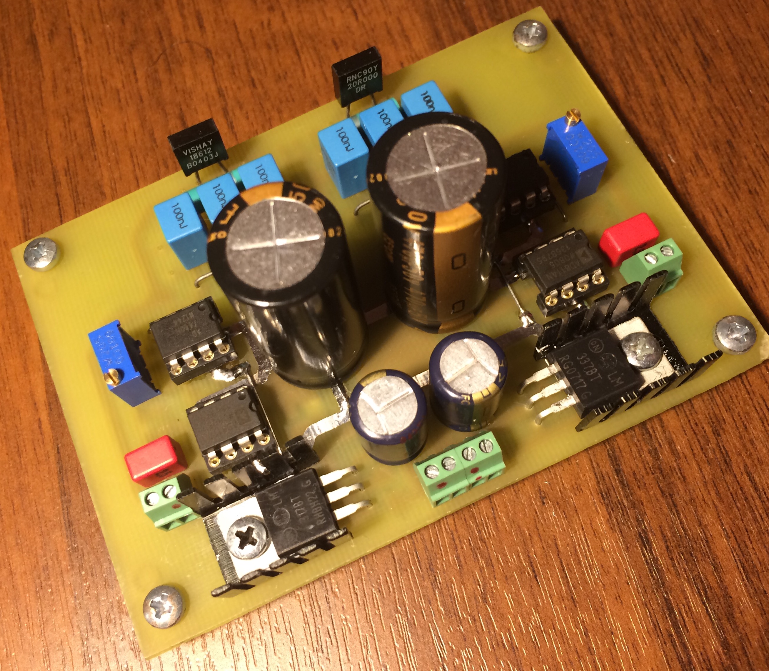 UPDATE: Подкорректировал разводку. Убрал неверно разведенный смд-конденсатор коррекции ad744. Все равно проще паять трухольным прямо на ноги 1 и 5 ОУ, как у меня изначально и было сделано. Добавил доп. отверстия в падах электролитов стабов, чтобы было понятнее куда паять перемычку при изготовлении ЛУТом. Скорректировал названия некоторых элементов, которые были неверными из-за копипаста