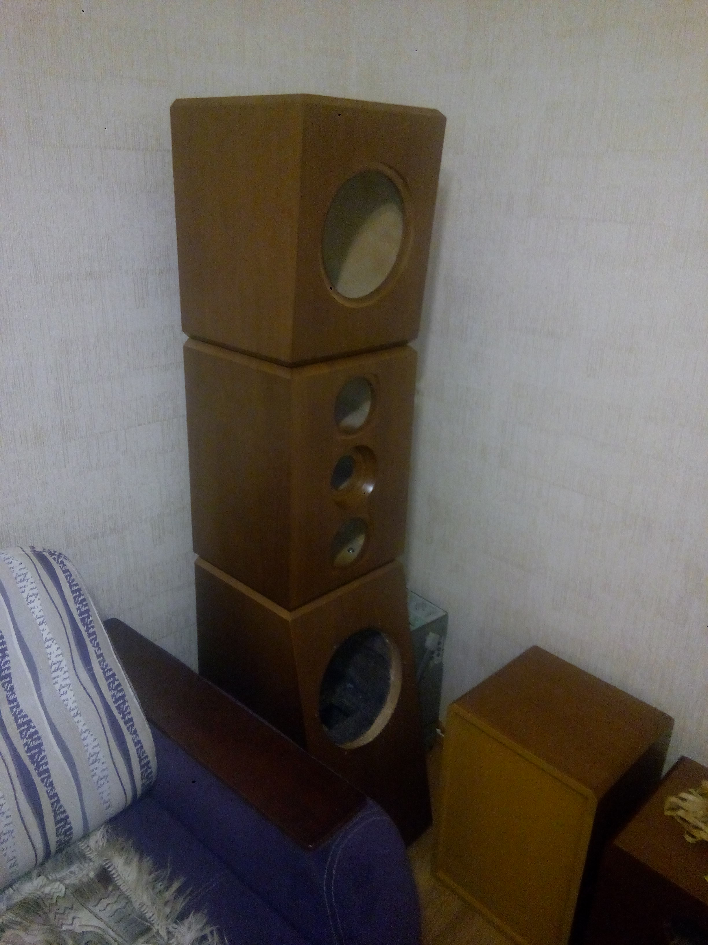 Акустика получилась на славу. Звук очень детальный. К моему удивлению 60 Гц ещё как звучат. Можно слушать и без саба. Сдувает с кресла. Хотя и они приготовлены, нижние ящики с Морелями. По совету Константиныча (Sabsonic) средники выполнены в ящике без задней стенки. Характер звучания этой АС и АС на Faital PRO 15PR400 схож.