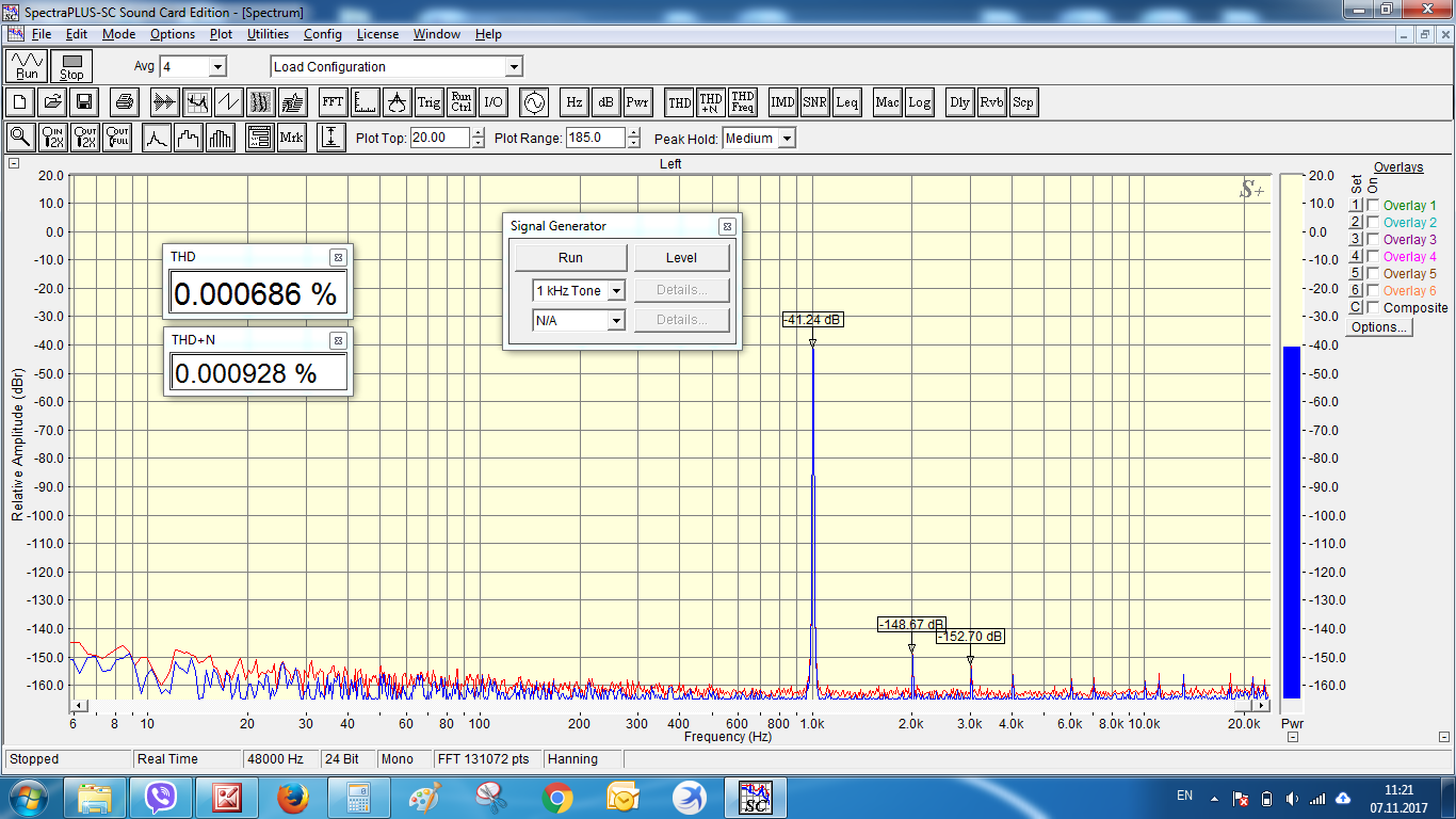 По параметрам должно быть не более 0,006% искажений 20Гц-20кГц.