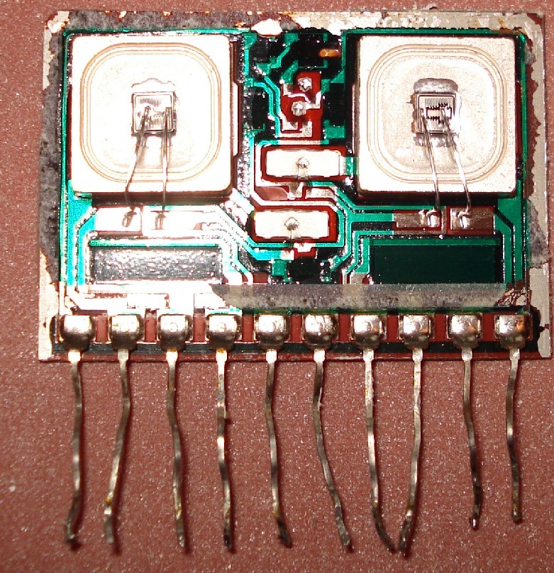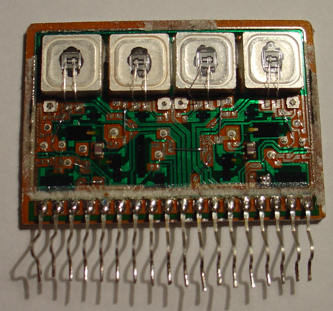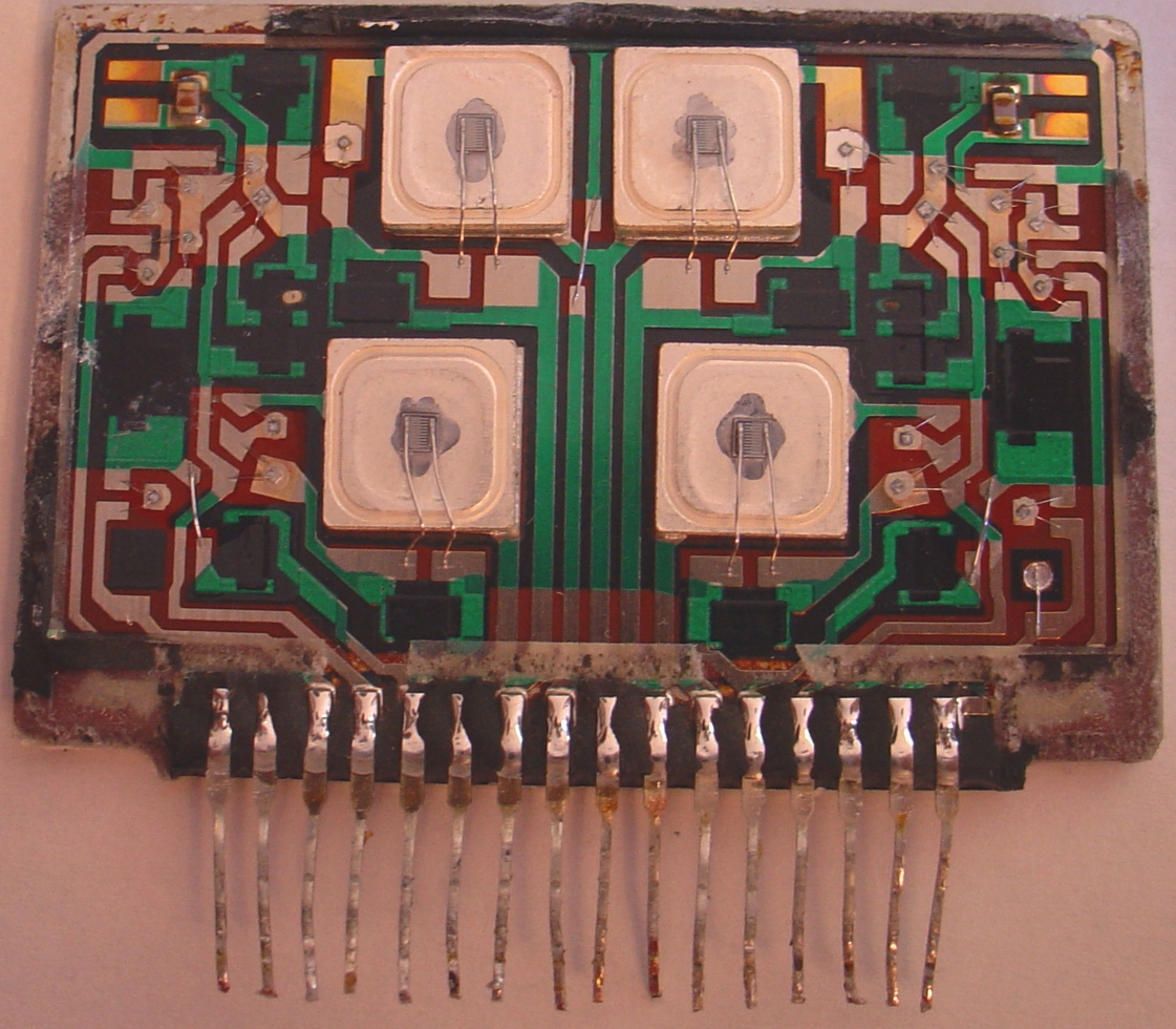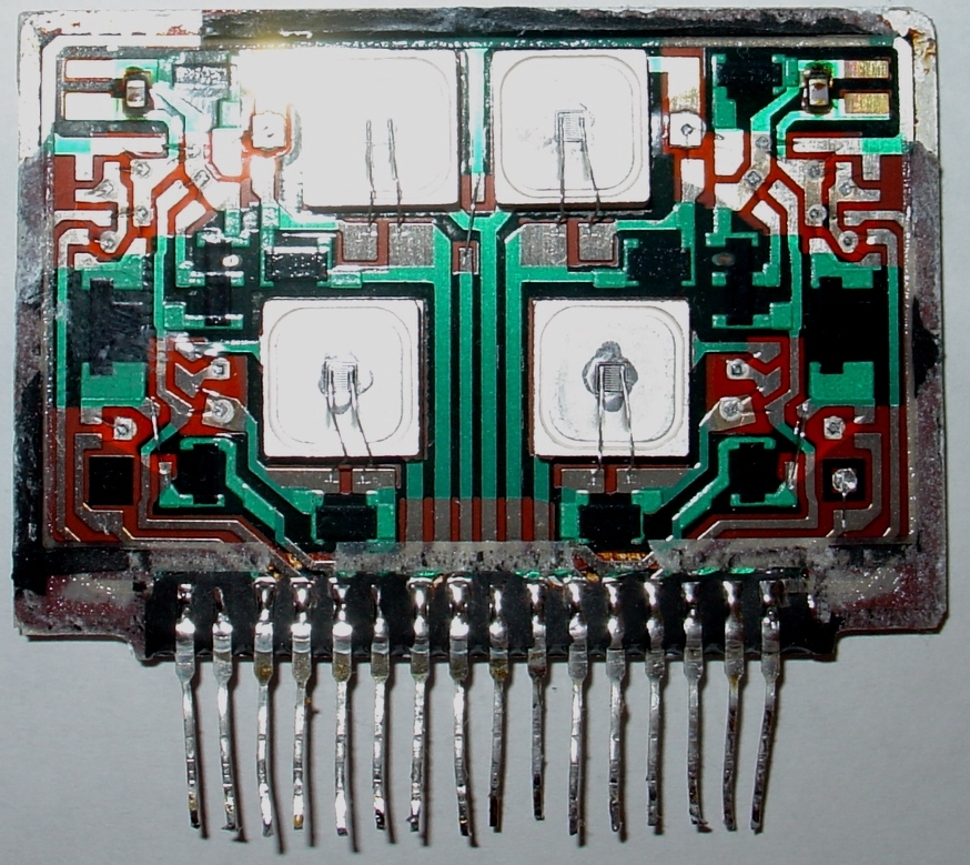 Для начала вводная - это не микросхема, это гибридная интегральная схема. Толстоплёночная. Конских размеров.