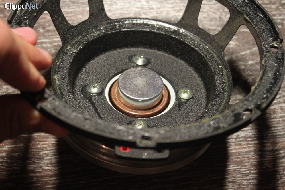 Диффузор вплотную к центрирующей шайбе, материала основы катушки не видно, центрирующая шайба наощупь покрыта чем-то резиново-силиконовым: