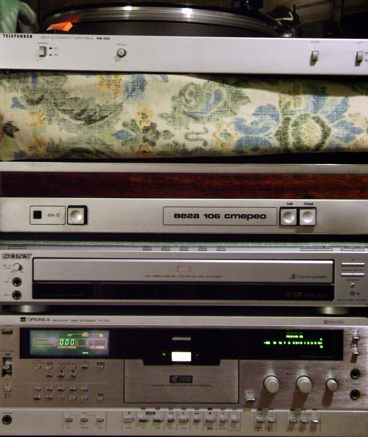 А я спомнил все: и вышеупомянутые кассетники, и катушечник Астра-209, и 2-й катушечник, сделанный лично из ЛПМ Сатурн-301 с передней панелью от Юпитера-203 (со сквозным каналом), и винил, лежащий в шкафу и ждущий своего часа...