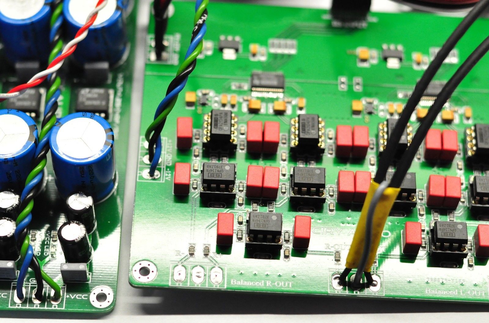 Качество сборки порадовало и звук в обшем не плох но в орогинальной комплектации шли NE5532, NE5534 операционики и решил заменить на OPA2134, OPA134.