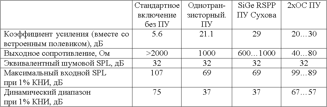 Получается, что для получения лучших результатов по ширине динамического диапазона, с одной стороны, надо определить минимальный допустимый Ку предусилителя, при котором еще не ухудшается нижний предел динамического диапазона из-за роста помех, а с другой - желательно добиться, чтобы ПУ был способен при малом напряжении фантомного питания выдавать максимально возможный неискаженный выходной сигнал. Тогда будет максимизирован верхний порог динамического диапазона.
