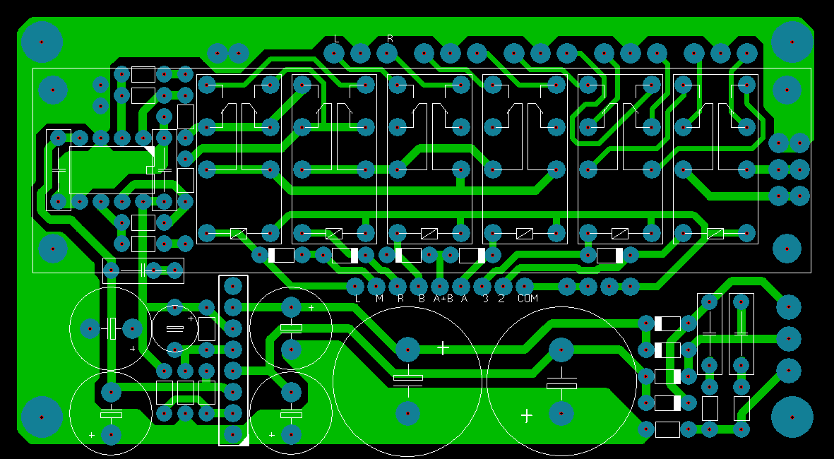 Есть два источника стерео (две звуковые карты в компьютере) и две пары АС (первые активные студийные мониторы, вторые: мощник+напольники). Требуется возможность выбирать источник и пару АС на которую послать сигнал. На выход что на мощник желателен регулятор громкости.