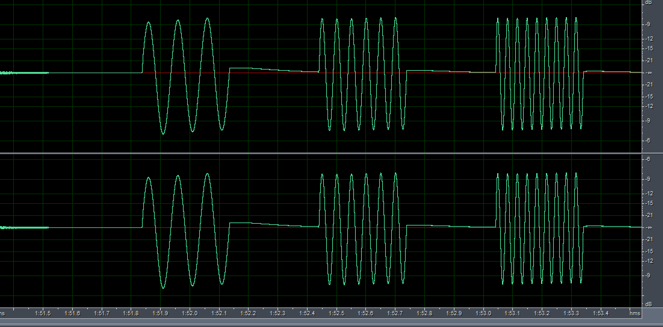 Амплитуда примерно 1 vrms , но картина работы карты не меняется в лучшую сторону ни при увеличении, ни при уменьшении тестовых сигналов.