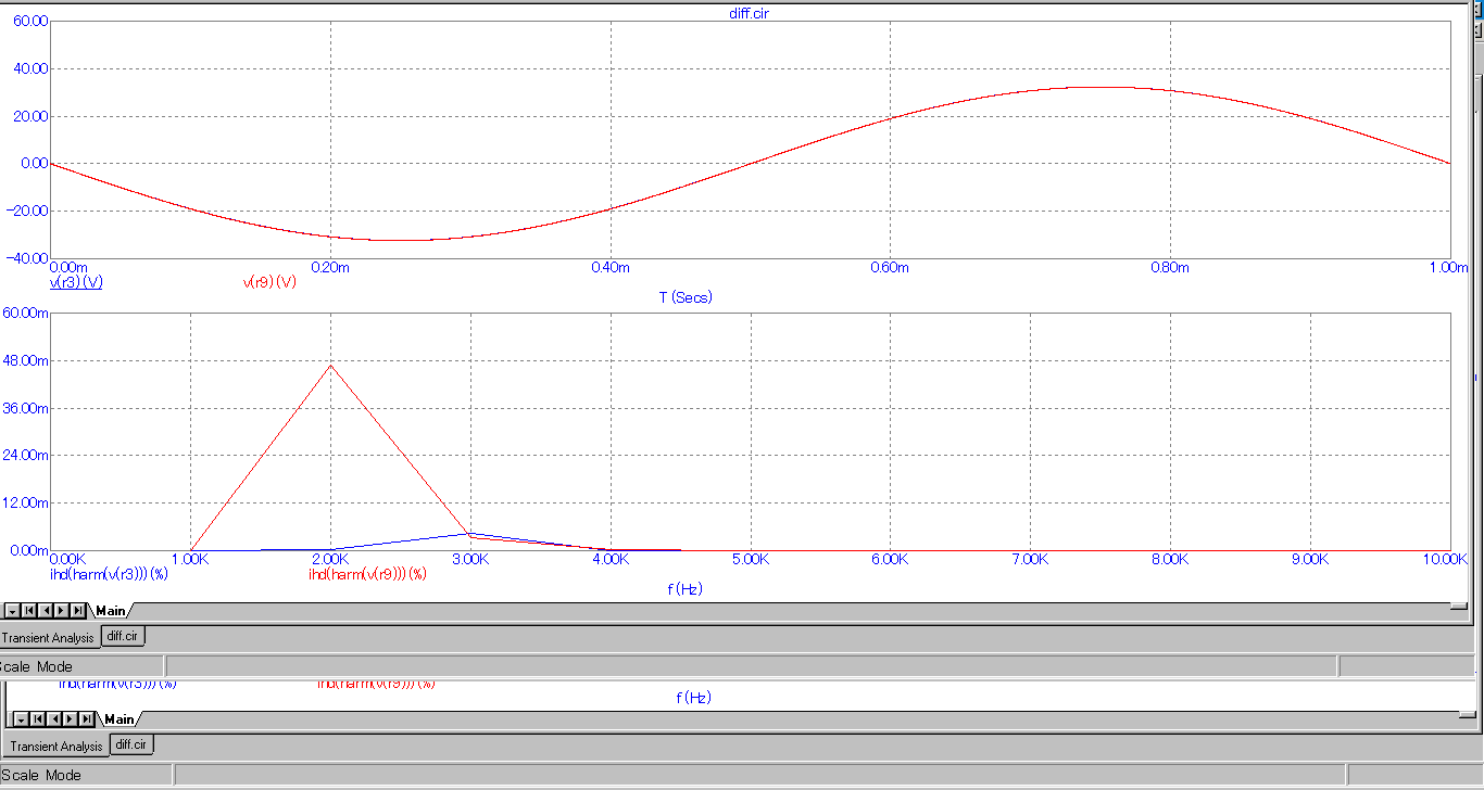 Но даже при идеальном балансе плеч как по постоянному, так и по переменному току (лампы подобраны, анодные резики - одинаковые, в катодах - хороший ИТ), вторая гармоника компенсируется не полностью. Причина – в несимметричной раскачке по одной сетке (вторая - заземлена). Из-за этого катоды диффа оказываются под напряжением, равным половине входного, и на ведущий триод действует напряжение Uвых-Uвх/2, в то время как на ведомый - Uвых+Uвх/2 в результате чего триоды работают на разных участках ВАХ.