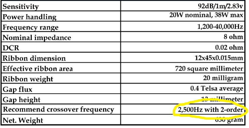 Не торопитесь так, там еще и по электрической части не лучше, и касательно совместимости 12" вуфера с маленькой ленточкой тоже. Страшилку о попытках пускать подобную пищалку на 2.5K рассказывать не буду. Думаю, будет справедливо, если по этому поводу выскажется товарищ Малиновский...