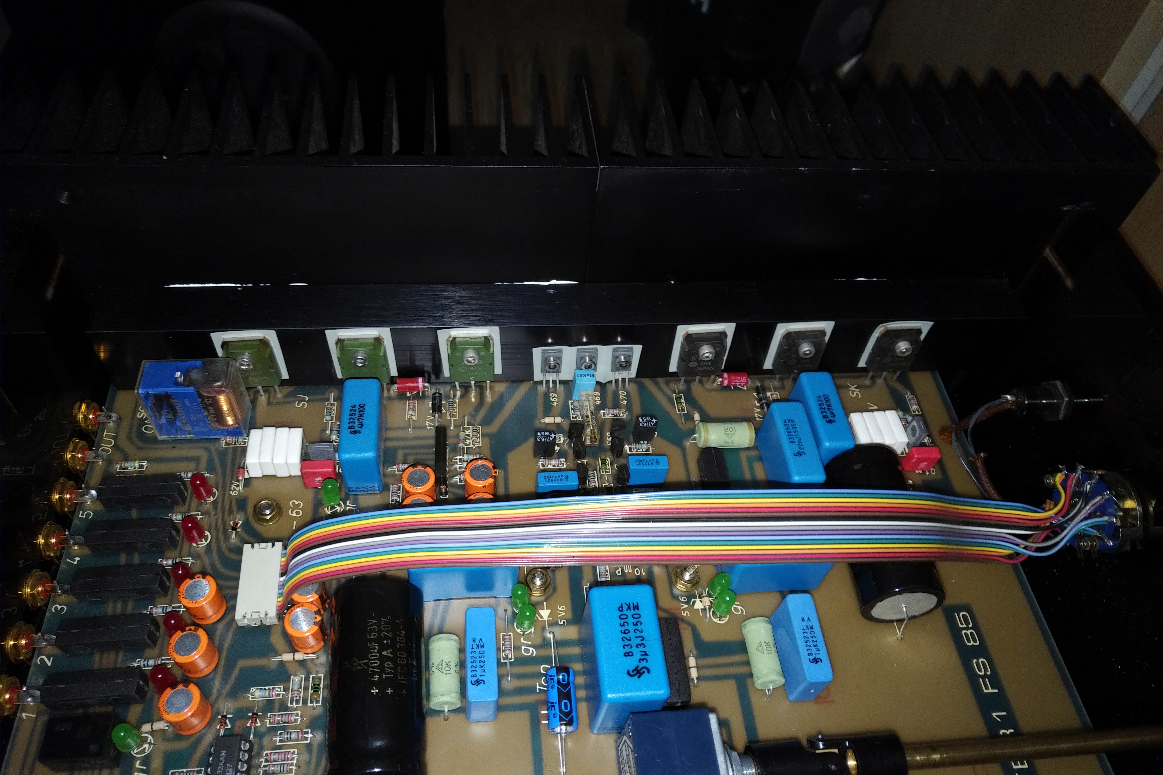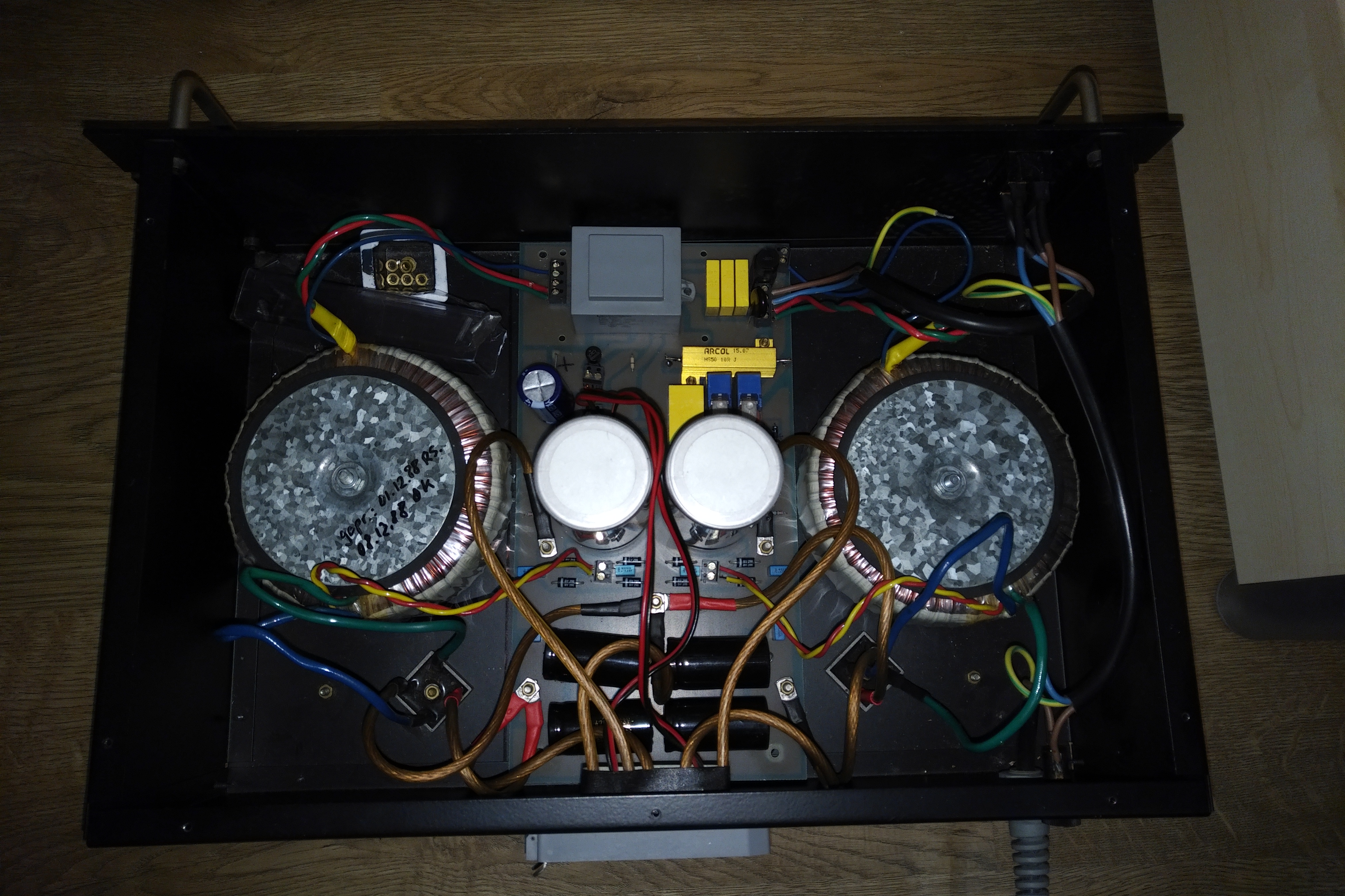 Собственно попал такой усилитель на ремонт, симптомы простые - не хочет переходить в режим нормальной работы, не включает питание усилительной части. Питание сервисной части работает. Из сделанного это полная замена всех аксиальных конденсаторов Frako (в усилителях Revox дохнут очень часто). По измерениям КЗ на выходе нет и выходные транзисторы не пробиты. Схему на именно этот усилитель найти не удалось, может у кого-то она есть, буду очень благодарен если ей поделится.