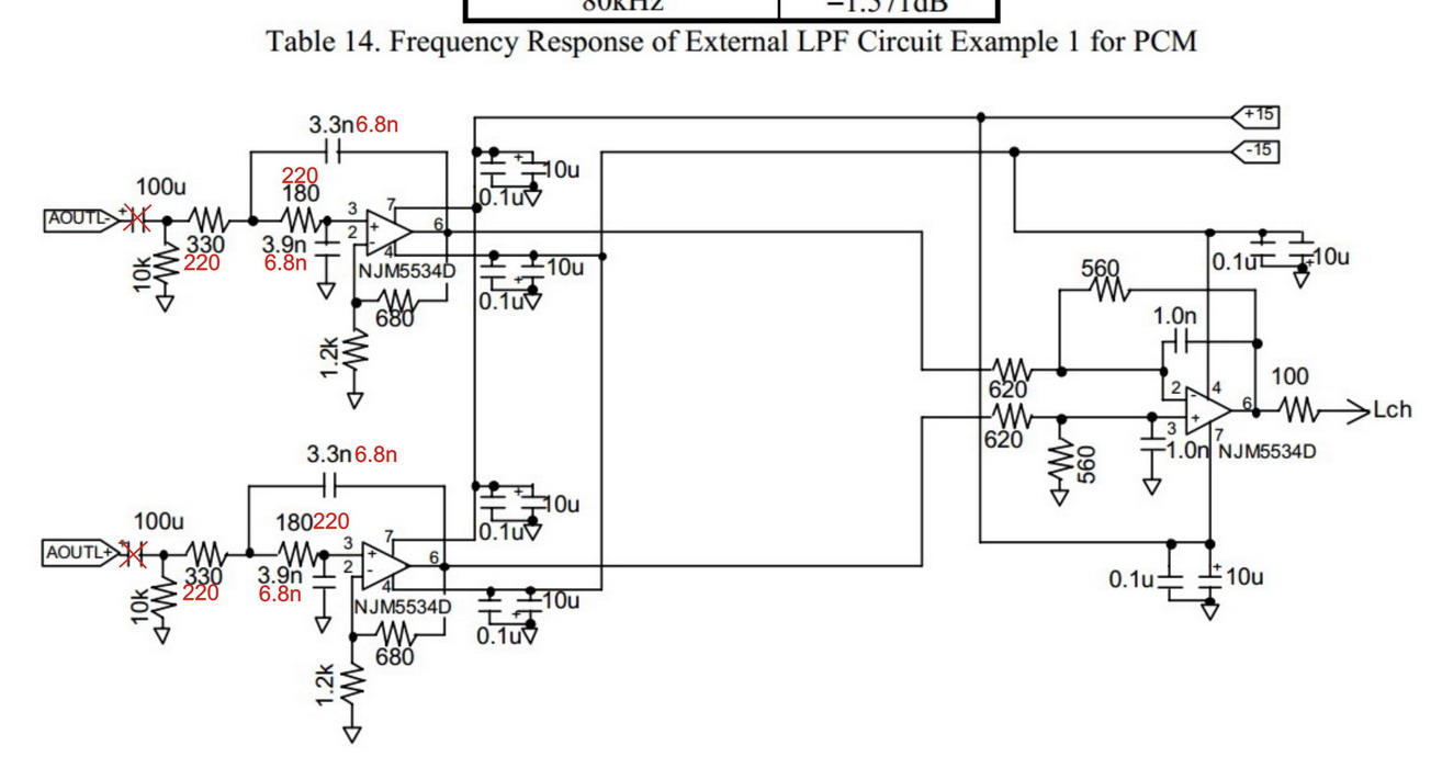 Собираю ЦАП - китайский конструктор на АК 4399, заказал, запаял почти все детали, но думаю ошибся с типом конденсатора в фильтре. Схема почти по даташиту ( прилагаю ниже ), на схеме конденсаторы 3,3 нФ и 3,9 нФ ( в моем китайце они по 6800 пФ ) , я их купил многослойную керамику смд ( MLCC ) , а по идее туда надо пленочные, например FKP2. Насколько это критично, чем чревато, могу ли я их запаивать или нужно заказывать пленку ??