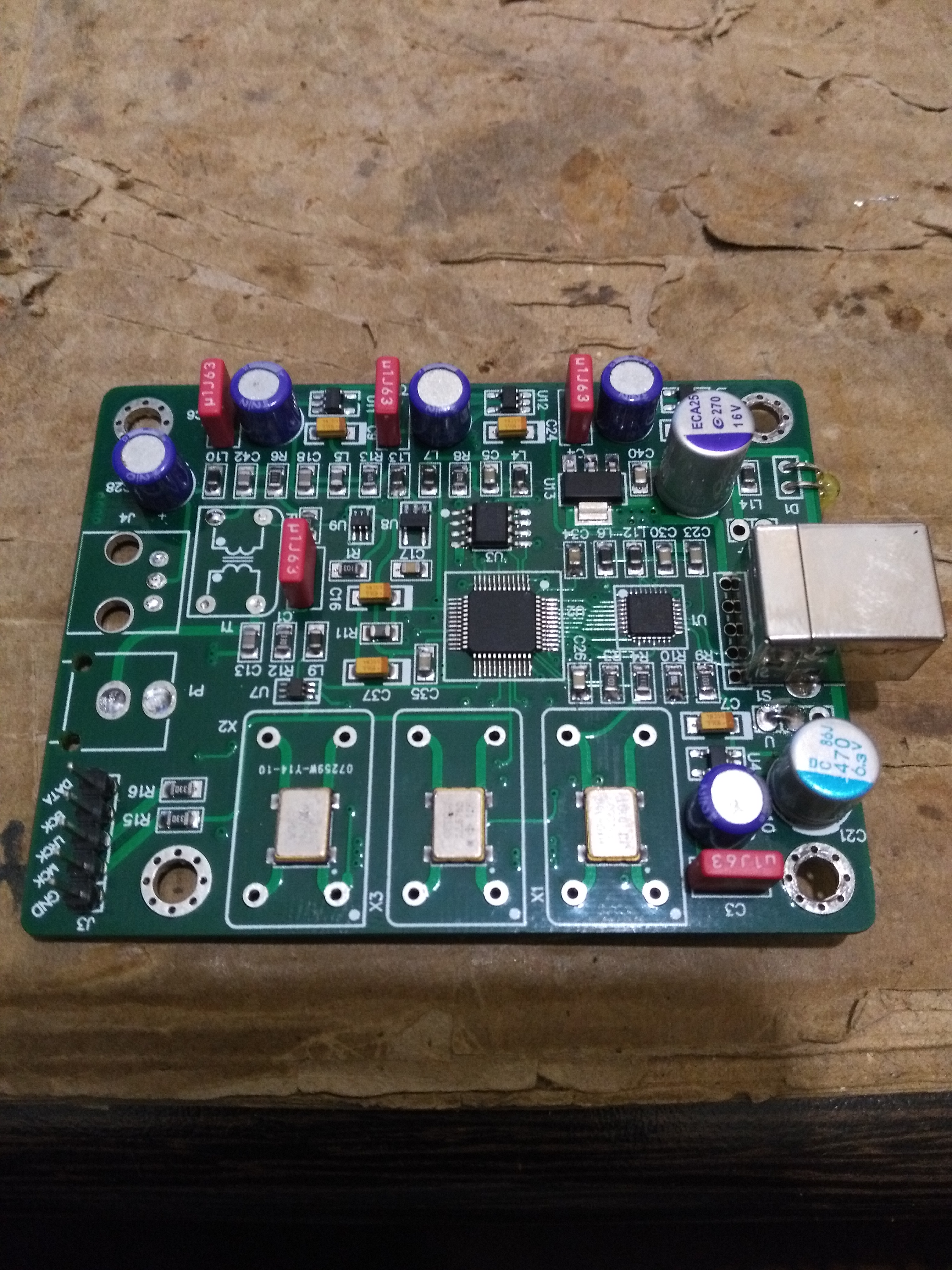 Здравствуйте, уважаемые форумчане! Перестал частично работать ЦАП на ESS 9018. Что значит частично? Коаксиал и опто входы работают штатно, USB вход работать перестал. Светодиод USB входа светится, на табло отображается информация о входящем сигнале с компа (битрейд и частота дискретизации), загорается при переключении светодиод у ESS 9018, но звука нет, пробивается что-то хриплое, с очень низким уровнем....На фото общий вид ЦАП и USB-платы. Визуально-каких-либо выраженных "поломок" не обнаружил.