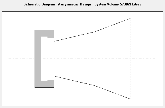 Предвосхищая ожидающие нас инсайты с картинками из симулятора для сабвуферов скажу, что симуляция среднечастотного рупора в Hornresp не даёт верного представления о происходящем в сч-диапазоне, следовательно не позволяет определить средний уровень отдачи, что делает ее совершенно бесполезной даже для подбора динамика. Максимум информации о средне- и высокочастотных рупорах даёт Akabak (из бесплатных), но и то на ВЧ он некорректен. Так что если у вас есть измеренный макет, стоит начать прямо с него. Кроме того, симуляция рупорного топа в полупространстве бессмысленна, потому что топы никогда не стоят на земле. Это кажется ерундовым допущением до тех пор, пока не окажешься с микрофоном около стэка, который упорно не желает демонстрировать результаты симуляции в полупространстве в области мидбаса.