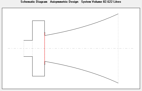 Ну будем честными, насимулировать ее несложно, я бы сказал немного иначе - он осознанно пошел на несколько серьезных компромиссов. Первый - малый объем задней камеры для увеличения отдачи в районе ~200 Гц, сделал ее возможно короткой и задемпфированной для драматического снижения первых отражений, ну и конечно рупор узкогорлый для отдачи в районе 400 Гц и ограничен ~700 мм в глубину, иначе народ бы совсем не понял.