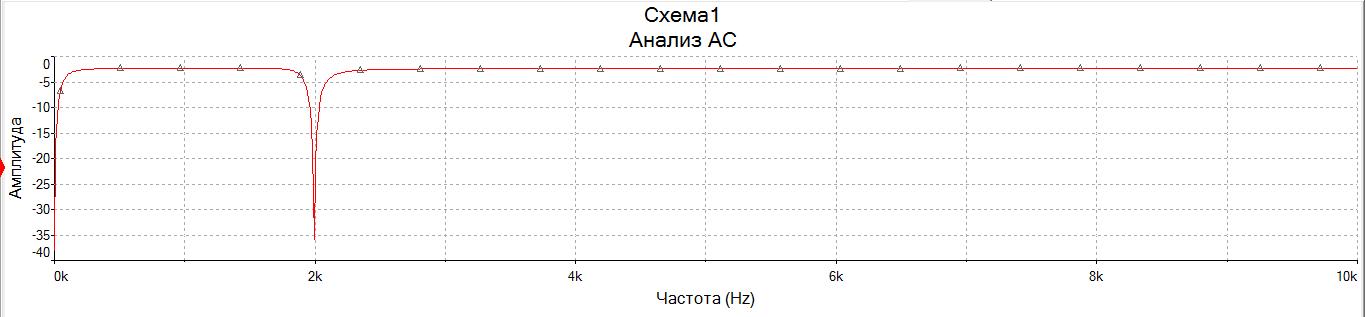 Схему собрал в Multisime, ослабление получил только до -40 дБ, что не так?