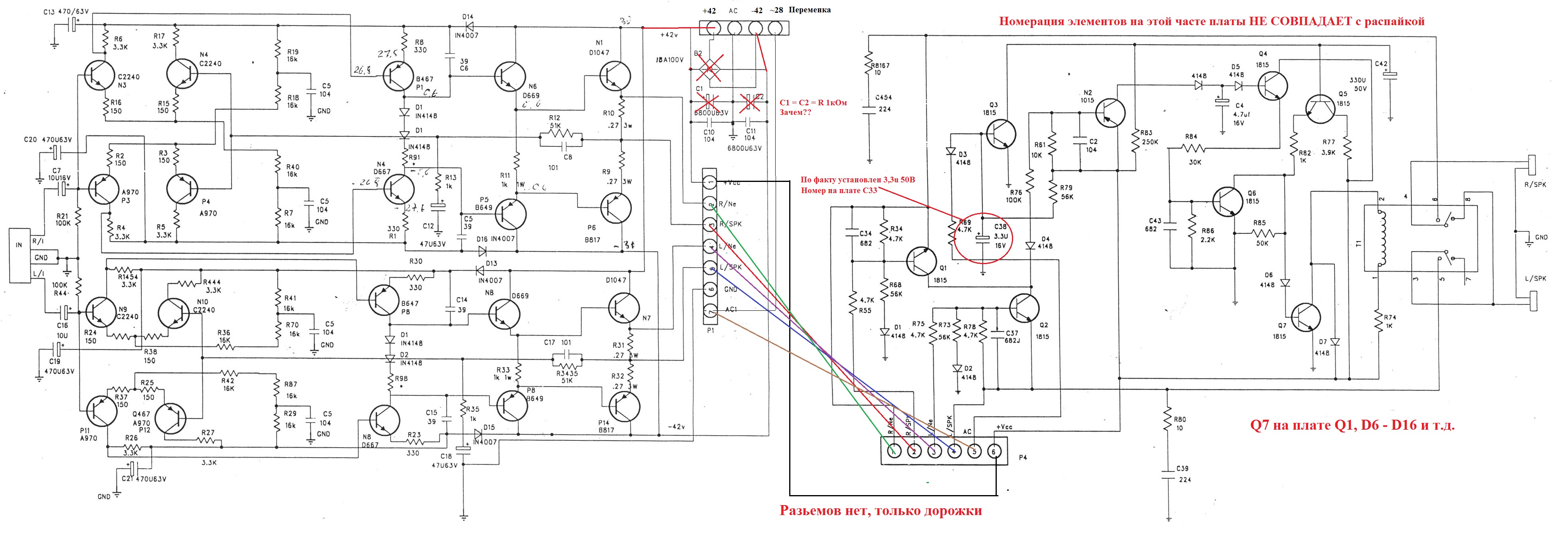 Разъем АС имеет 4 пина а не 3 (+42В, G, -42В, ~28В)