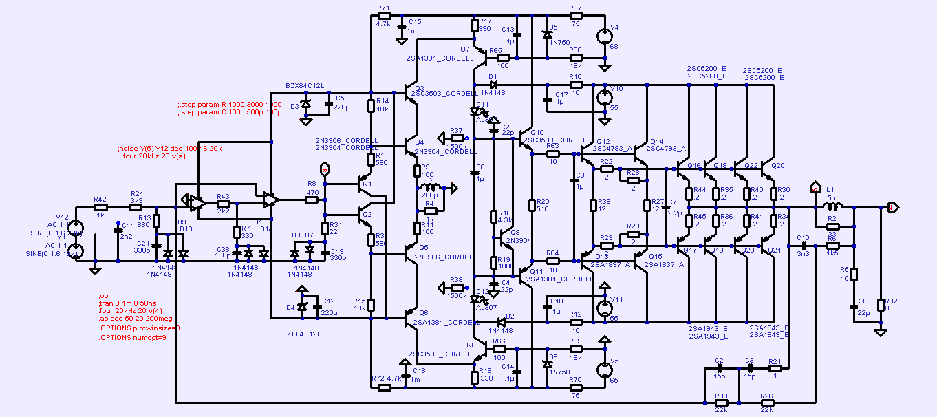 При любых сигналах? Для нейтральной передачи звука в петле ООС для многокомпонентного сигнала не должны возникать колебания или вообще (идеальный случай) или не дольше нескольких сотен нс, это должна обеспечивать внутренняя коррекция каскадов, поэтому и обратил внимание на важность устойчивости без конденсаторов в общей ООС (эти конденсаторы должны только увеличивать запас устойчивости для получения апериодической ПХ, но если без этих конденсаторов схема генерирует в каком-то режиме, то схема обречена на средний и ниже уровень).