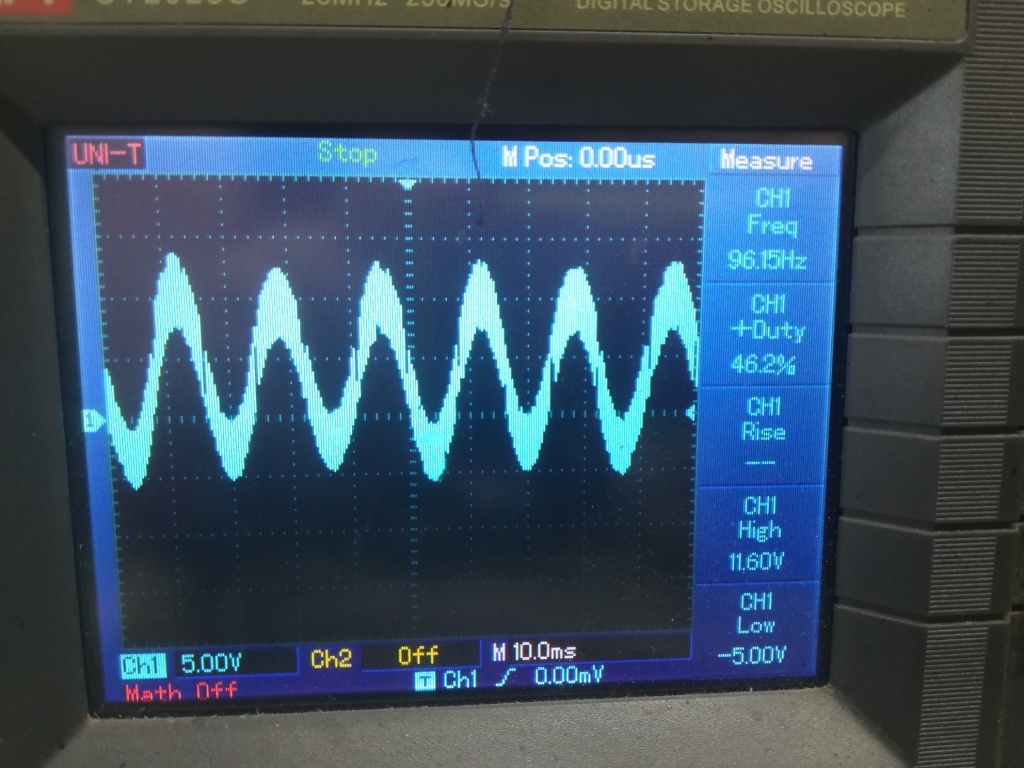 При подаче 50-80 герц с генератора, на осциллографе видна синусоида, как бы созданная из несущей частоты.