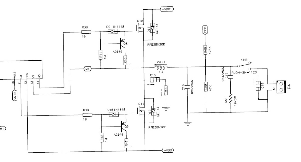 Были выкинуты дохлая логика и IRS2011. Вместо них установлен IR2184, заменен стабилитрон. Правда, в наличии был только на 12 вольт.