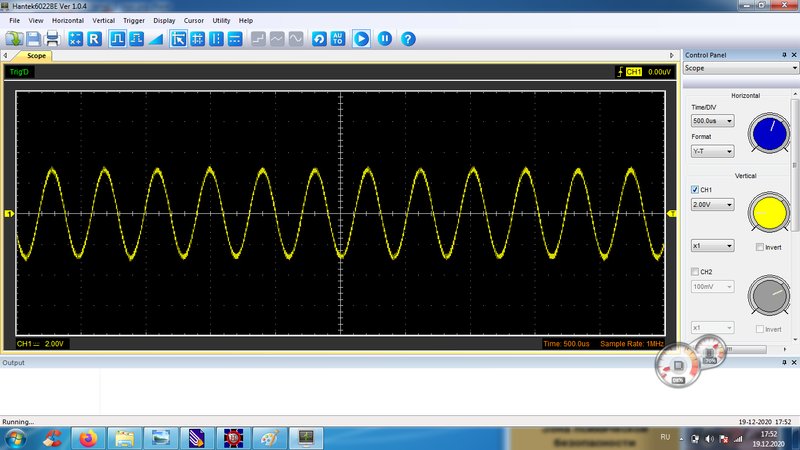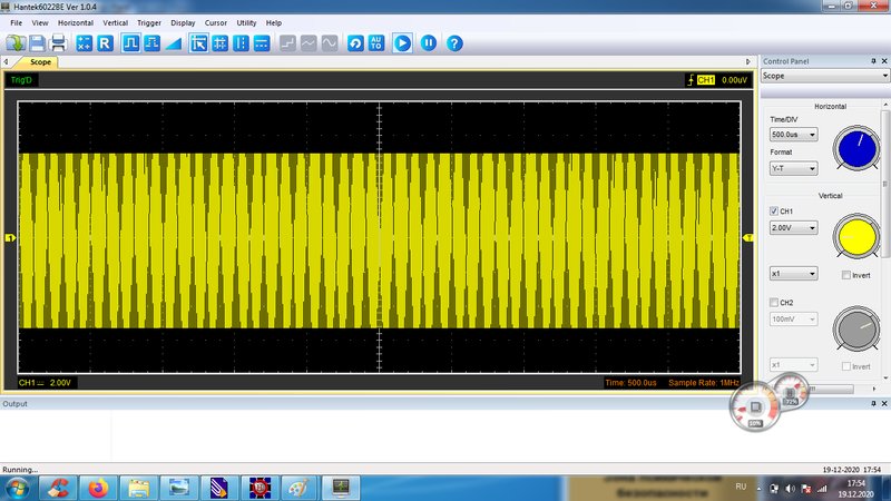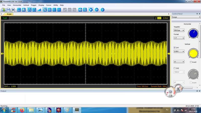 Здесь сигнал уже как-будто не модулирован и абсолютно не зависит от изменения входного сигнала. Примечательно, что на стирающей головке сигнал идентичен этому.