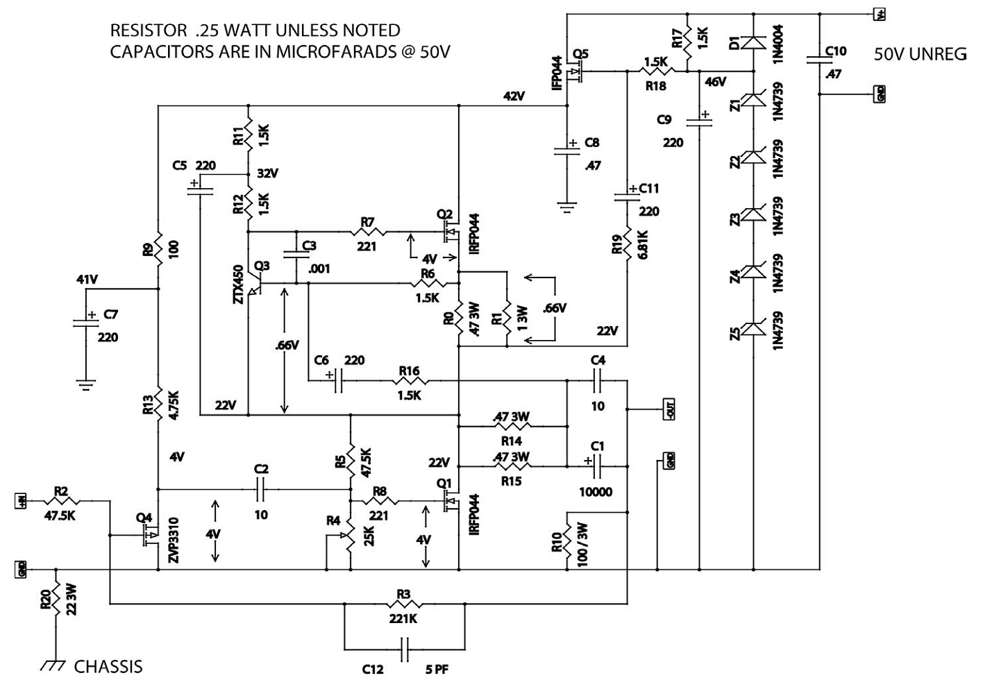 Доброго времени суток! уважаемые, подскажите или пните в нужном направлении. проблема такая, собрал этот усилитель, но вот незадача на транзисторе zvp3310, не получается напряжение как указано на схеме, в других контрольных точках все почти нормально. у меня в одном канале 1,75в, в другом 1,63в. транзистор zvp3310fta(smd корпус). других замен в деталях нет. может в нем проблема?