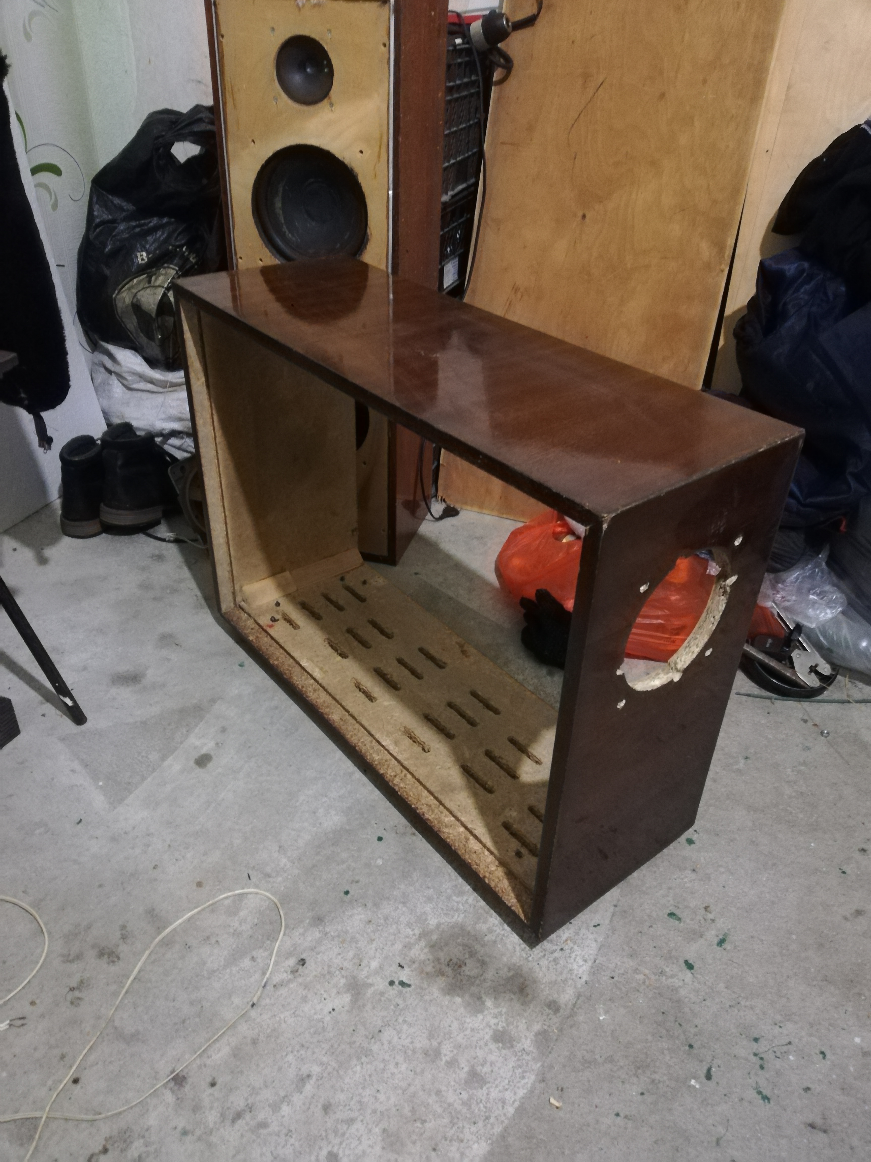 Корпус от лампового ТВ.(выше уже написали). Там с правой стороны был динамик.